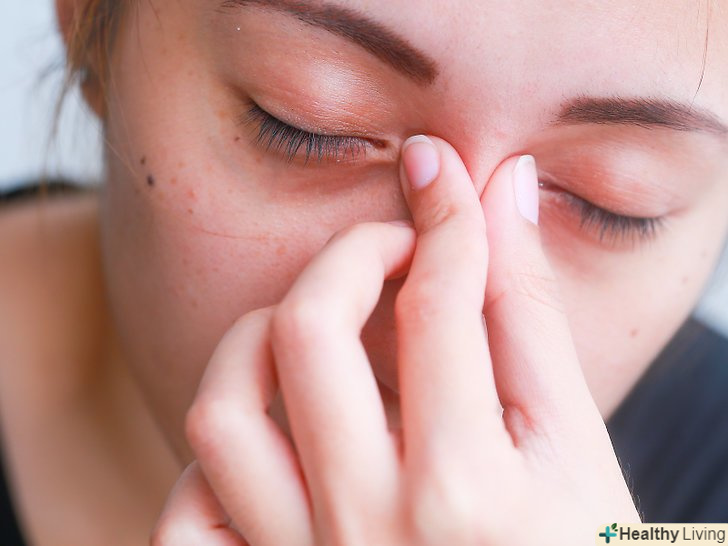 Помасажуйте перенісся. Закрийте очі і помасажуйте перенісся. Сфокусуйтеся на шкірі по ліву і праву сторони від носа, там, де зазвичай розташовуються окуляри. Це допоможе полегшити тиск пазухи, яке могло підвищитися під час плачу.