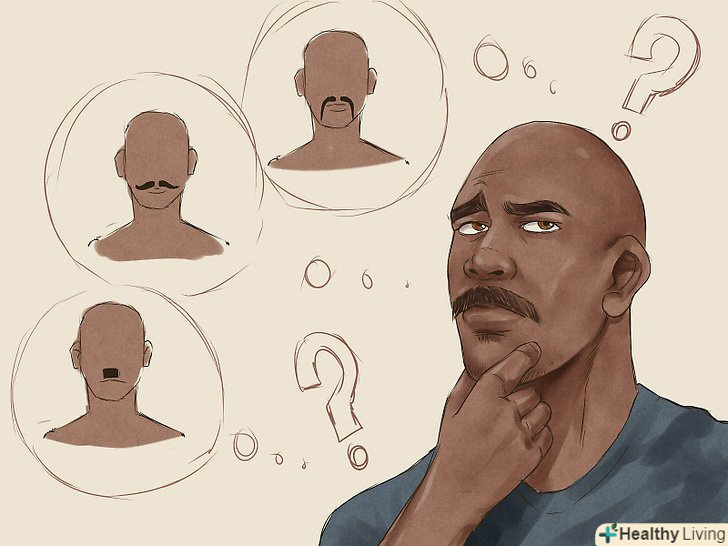 Виберіть, яку форму вусів ви хочете, і подумайте, чи підійде вона вам. залежно від типу особи чоловік може підібрати ті чи інші стилі вусів. Зверніть увагу на те, де на вашому обличчі найбільш інтенсивний ріст волосся, а також на їх густоту. Завдяки цьому ви зможете вибрати правильну форму вусів.- Ви можете відредагувати вашу фотографію в фотошопі або попросити поради у друзів або сім'ї. Якщо ви не можете ні того, ні іншого, то просто подивіться на себе в дзеркало і уявіть себе з вусами, які вам подобаються.