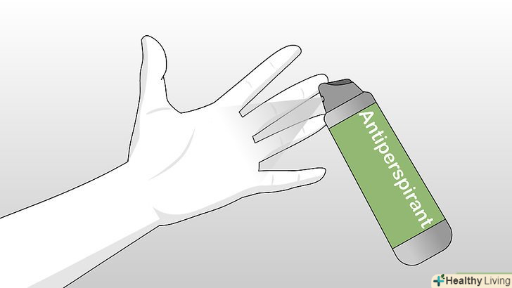 Почніть використовувати антиперспірант. можливо, ви не здогадувалися використовувати антиперспірант на долонях, так як його зазвичай використовують в пахвовій області. Але ті ж самі речовини, які допомагають запобігти надмірному потовиділенню пахв, допоможуть і долоням. [1]- Виберете антиперспірант без запаху з маркуванням clinical strength, який містить алюміній і цирконій. Багато хто вважає, що такі антиперспіранти більш ефективні.