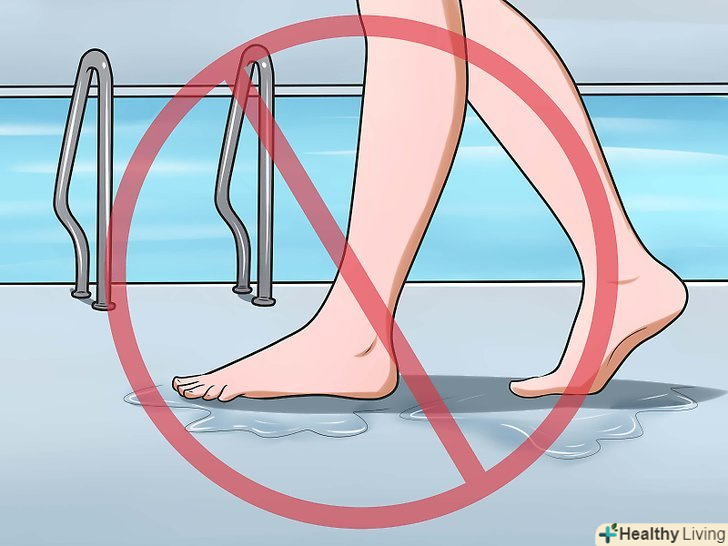 Не ходіть босоніж в громадських місцях. [7] тривале носіння вузького взуття може бути фактором ризику розвитку грибкової інфекції; таким же ризикованим може виявитися і прогулянка босоніж в громадських місцях, де може бути присутнім грибок. Обов'язково одягайте сандалі або шльопанці при відвідуванні громадських басейнів, душових і роздягалень. Це значно знизить ймовірність зараження грибковою інфекцією.
