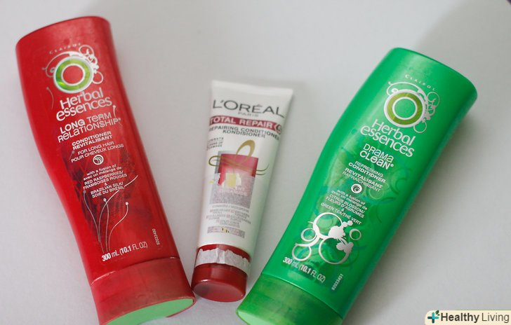Викиньте товари, що містять жорсткі хімікати. у вашому пошуку густого волосся, у вас напевно зустрінете цілу купу шампунів і кондиціонерів, які обіцяють зростання довгих і пишних волосся. На жаль, більшість з них, навпаки, ще більше посилять проблему. Погляньте на склад і викиньте ті товари, в складі яких є компоненти, які ви насилу можете вимовити. Для росту густого волосся, ви повинні уникати продуктів по догляду за волоссям, в складі яких містяться шкідливі хімікати.- Лаурилсульфат натрію і лауретсульфат натрію входять до складу багатьох шампунів. Ці миючі засоби також можна виявити в засобах для миття посуду, і вони завдають дуже сильної шкоди вашому волоссю.