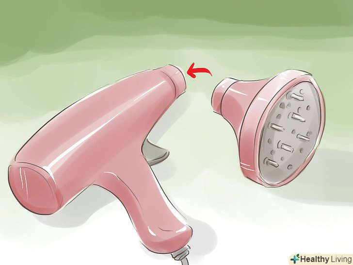 Користуйтеся феном з дифузором. потужний потік повітря може порушити форму локонів і змусити волосся пушіться. Дифузори рівномірно розподіляють потік повітря. За допомогою дифузора можна надати волоссю об'єм і закріпити локони. [21]- Переконайтеся, що дифузор щільно сидить на фені. Фени часто продаються зі спеціальними дифузорами, але можна також купити універсальний дифузор в інтернеті або в косметичному магазині. [22]