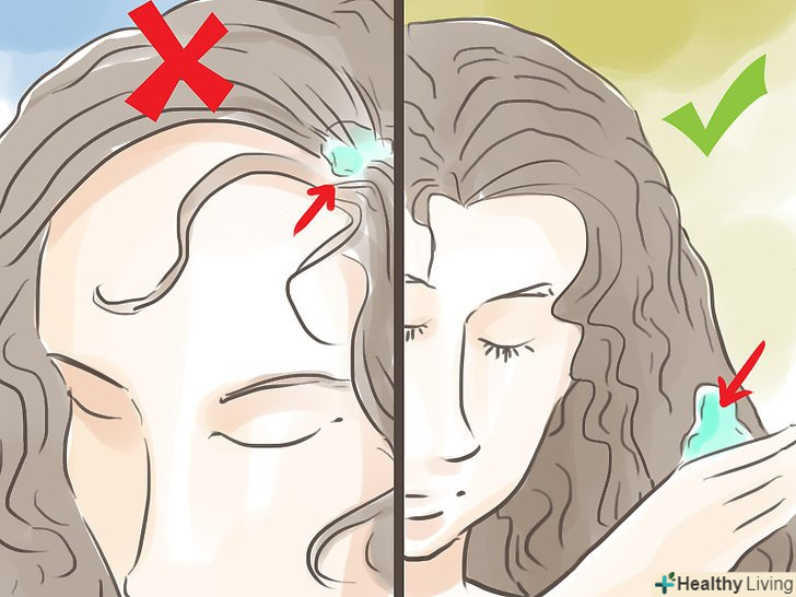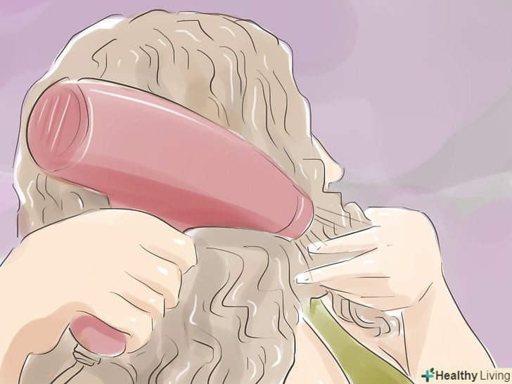 - Наносите засоби для укладання на вологе волосся до сушки феном. Волосся повинні бути на 75% підсохлими. [23]