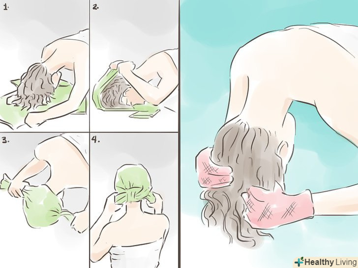 - Якщо вирішите сушити волосся рушником, коли змиєте Кондиціонер, опустіть голову вниз і промокніть волосся рушником. Існують також спеціальні рукавиці для сушіння волосся з мікрофібри. Така сушка дозволить зібрати зайву воду і додати волоссю обсяг. Так ви також зможете попередити пушеніе і зробити локони більш чіткими. [20]