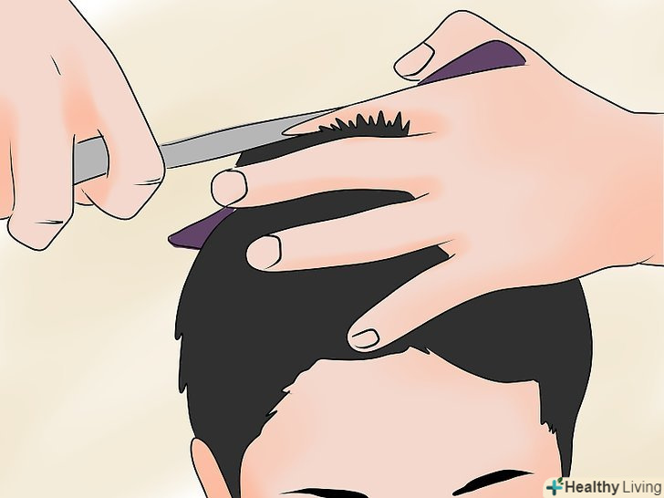 Закінчите роботу застосуванням засобу для укладання. після завершення роботи ножицями, коли ви будете задоволені результатом стрижки, скористайтеся гелем для волосся і поставте з його допомогою волосся у верхній частині голови стирчком, щоб домогтися чіткого і більш акуратного виду стрижки.
