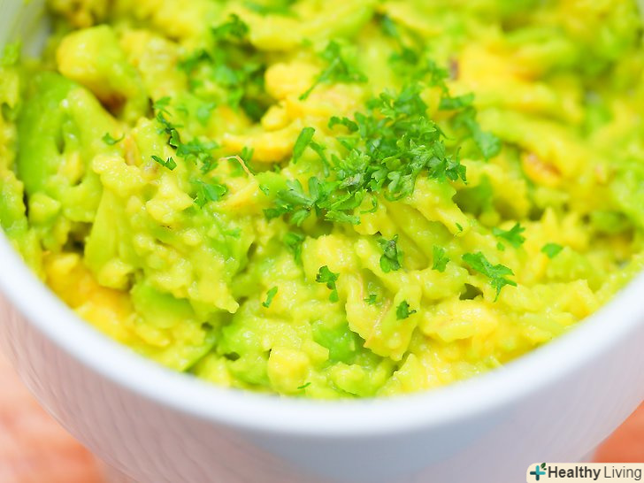 Зробіть пюре з авокадо і банана. банани сприяють оздоровленню і зміцненню вашого волосся. Авокадо живить їх, роблячи м'якими і блискучими. Для створення хорошого засобу, додайте 1-2 чайні ложки олії (будь-яке з перерахованих вище підійде). Перемішайте, нанесіть на волосся, залиште від 30 до 60 хвилин.