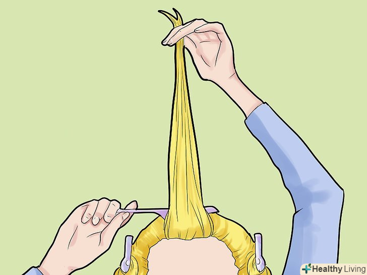 Відокремте передні пасма після стрижки. залиште пасмо шириною 2,5 см з передньої і верхньої частини голови для вирівнювання довжини задніх пасом.