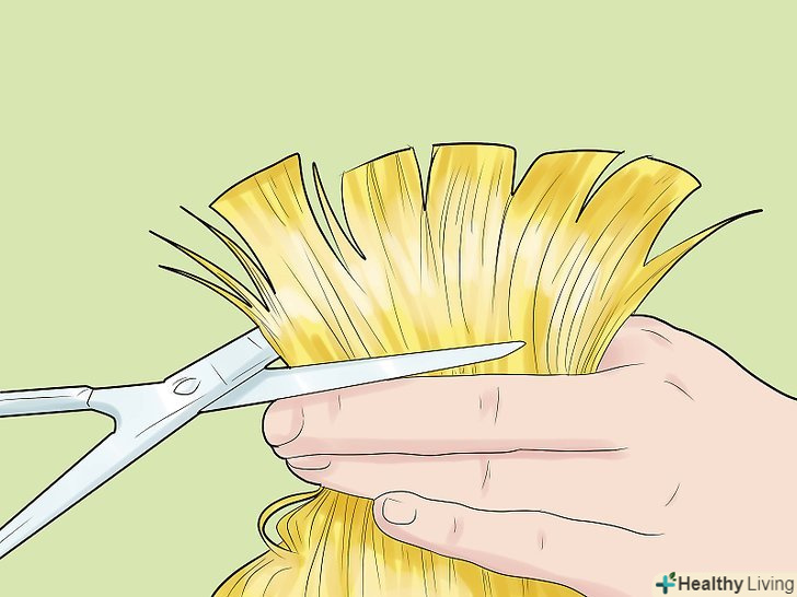 Підріжте волосся горизонтально вздовж довжини. їли ви хочете зробити явно виражений «каскад» - потрібно всього лише профілювати кінчики волосся уздовж кожен раз під час стрижки.- Волосся підрізайте до самих пальців.