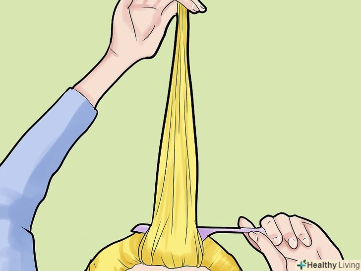 З'єднайте волосся в 2 пасма по по 2,5 см рівно вгору до центру голови.