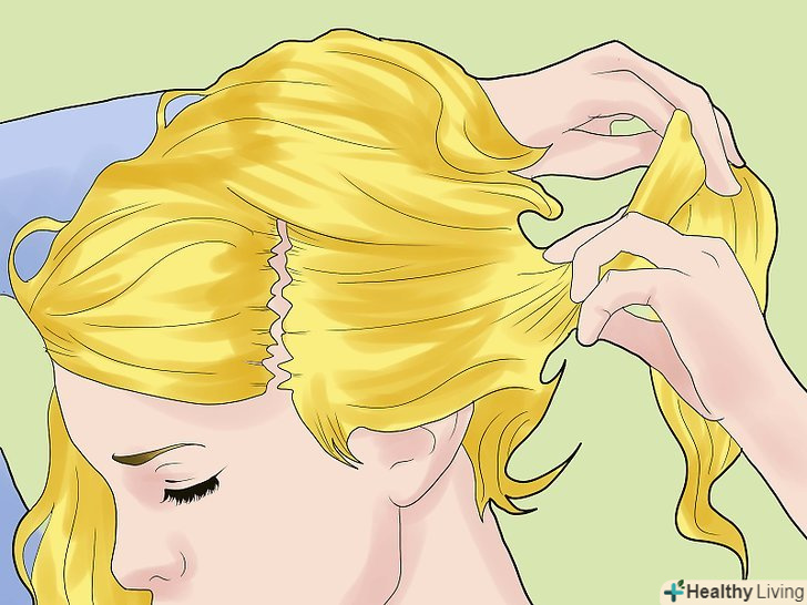 Начешіть волосся вперед на обличчя. зробіть пасма з кожного боку від одного вуха, через всю голову, і до другого вуха.