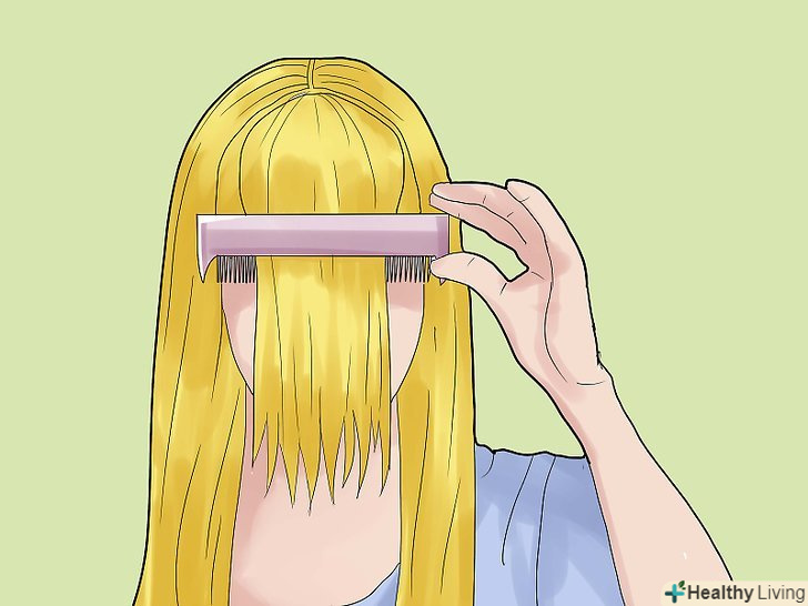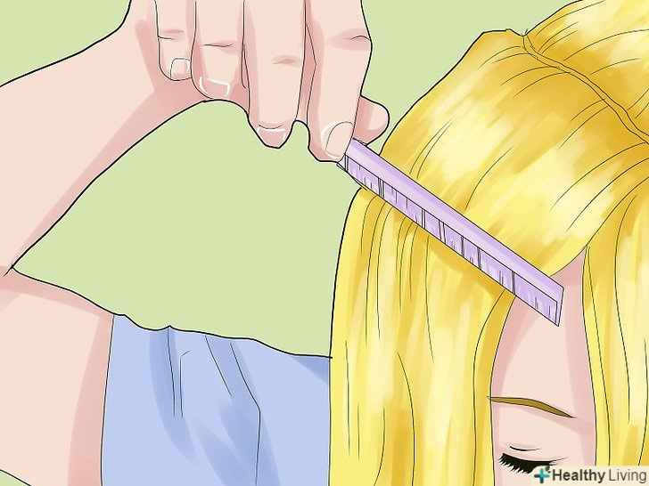 Відокремте з кожного боку по пасма шириною в 2,5 см нагорі і з боків від проділу. розчешіть ці пасма і обріжте їх злегка коротше.- Ви можете поміряти довжину волосся уздовж вилиць перед розчісуванням. Це буде найкоротша довжина.