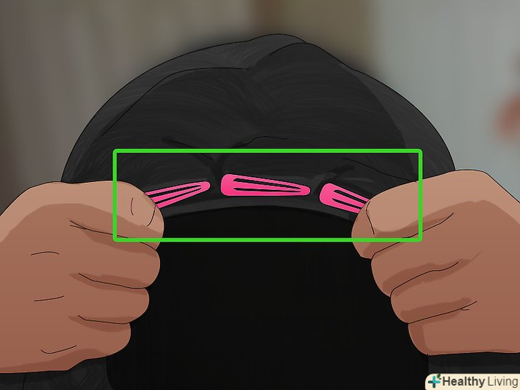 - Можна додатково закріпити перуку невидимками. Протягніть шпильки крізь зовнішню частину перуки всередину, захоплюючи шапочку і волосся під перукою. Переконайтеся, що шпильок не видно. [12]