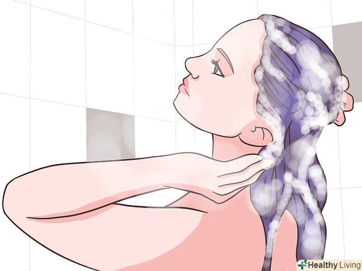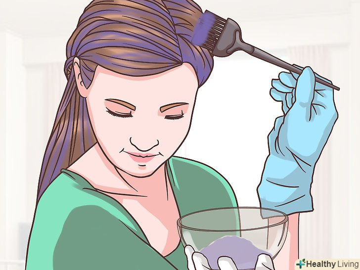 Вимийте голову. ретельно вимийте голову, а потім дайте волоссю висохнути природним чином або висушіть їх феном. Можна скористатися звичайним шампунем і кондиціонером для волосся. Вам лише необхідно відмити волосся від надлишкових забруднень і слідів хни, якщо ви користувалися нею. Це полегшить процес фарбування. Волосся можна залишити трохи вологими; в дійсності, легка вологість навіть сприяє процесу фарбування.