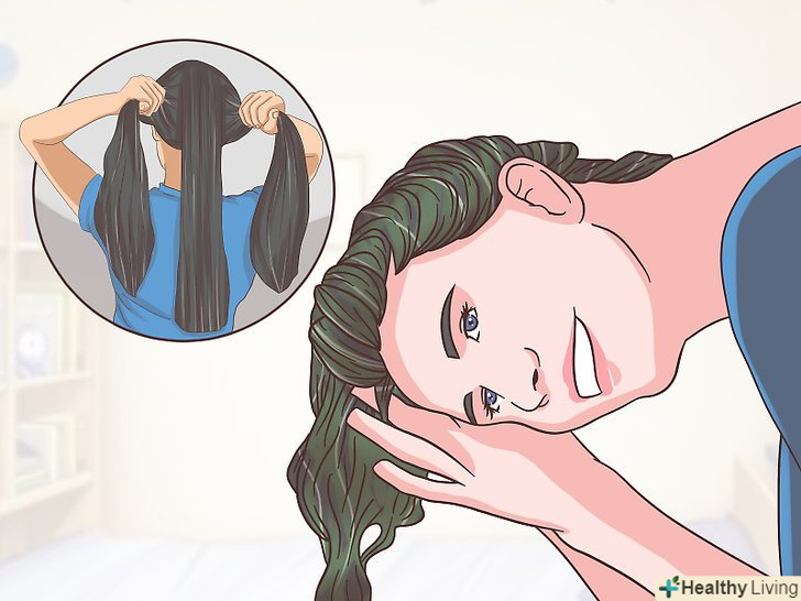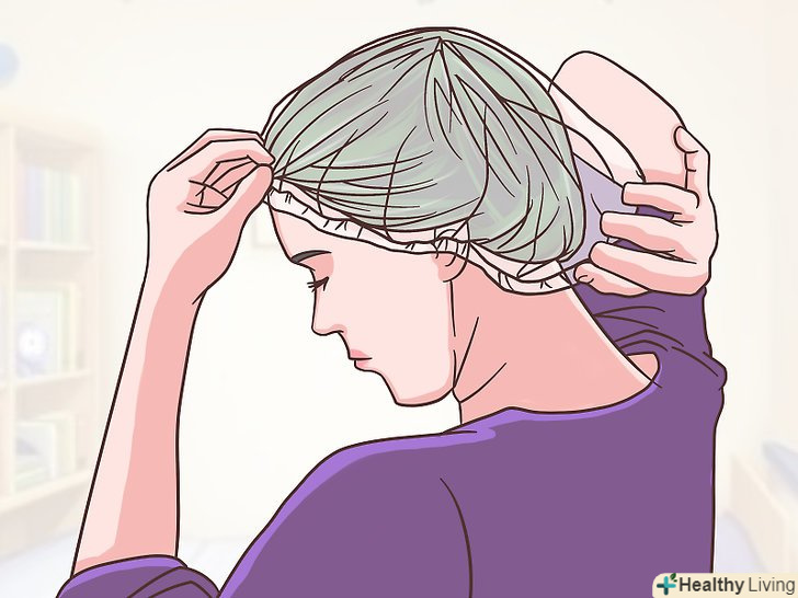 Оберніть голову поліетиленом. вам необхідно забезпечити вбирання басми в волосся. Тому, завдавши фарбу на волосся, голову слід обернути поліетиленом або надіти на неї шапочку для душу. Залиште волосся в такому стані приблизно на одну годину. [7]