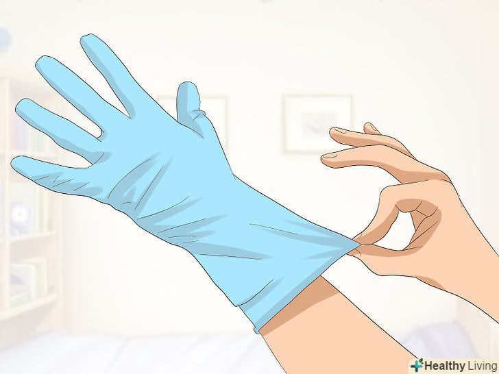 Одягніть рукавички. ваші руки можуть забруднитися в фарбі і стати від неї синіми. Щоб цього не сталося, надіньте пару гумових рукавичок перед роботою з фарбою. Також вам підійдуть Латексні господарські або садові рукавички. [5]