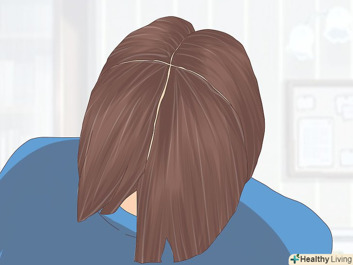 Поділіть волосся на секції. розчешіть волосся, щоб розплутати всі сплутані ділянки. Після цього поділіть волосся на кілька секцій, щоб полегшити подальший процес їх фарбування. Найчастіше волосся ділять на чотири рівні секції. Для цього буде потрібно створити два перпендикулярних проділу. Спочатку поділіть волосся проділом на передню і задню половину, а потім ще одним проділом — на ліву і праву сторони. Так у вас вийдуть чотири секції. [4]- Відокремте секції волосся один від одного шпильками або невидимками.