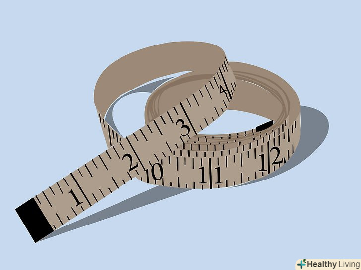 За допомогою сантиметрової стрічки виміряйте охоплення голови, щоб мати можливість відрегулювати розмір перуки щодо отриманого результату. Порівняйте довжину окружності вашої голови і пінопластової голови під перуку. Другу мірку потрібно знімати від лінії росту волосся до самого потилиці. Якщо ваша голова більше голови під перуку, то скористайтеся обгорткової стрічкою і обмотайте нею манекен стільки разів, скільки знадобиться для отримання потрібного обсягу. Те ж саме зробіть від лінії росту волосся до потилиці. [9]