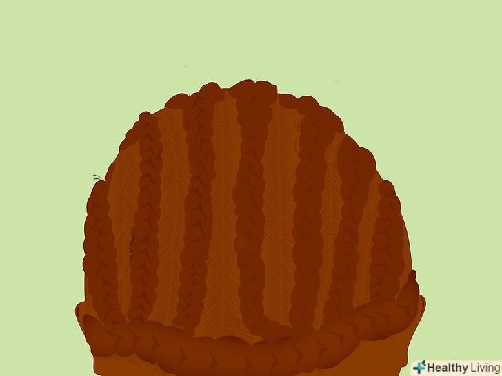 Скрутіть і заколіть волосся, які не в кісках. потрібно зав'язати решту волосся або скористатися затискачем, щоб прибрати їх від особи. Підживлюйте волосся спеціальним засобом на зразок ямайського касторової олії, щоб зволожити і зміцнити їх. Дозвольте засобу проявити свої корисні властивості, поки ви переходите до безпосередньо створення перуки. [4]