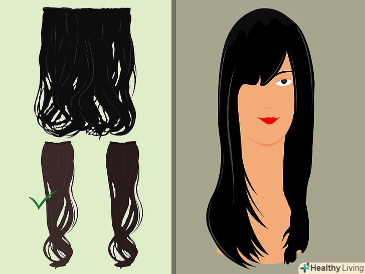 Підберіть колір, який найбільш відповідає відтінку вашого волосся. в даний момент можна знайти пасма самих різних кольорів, тому не зупиняйтеся на тих, які абсолютно відрізняються від вашого природного відтінку. Пучки, в яких грає гамма темних або світлих пасом, виглядають більш природно, ніж однотонні. [6]