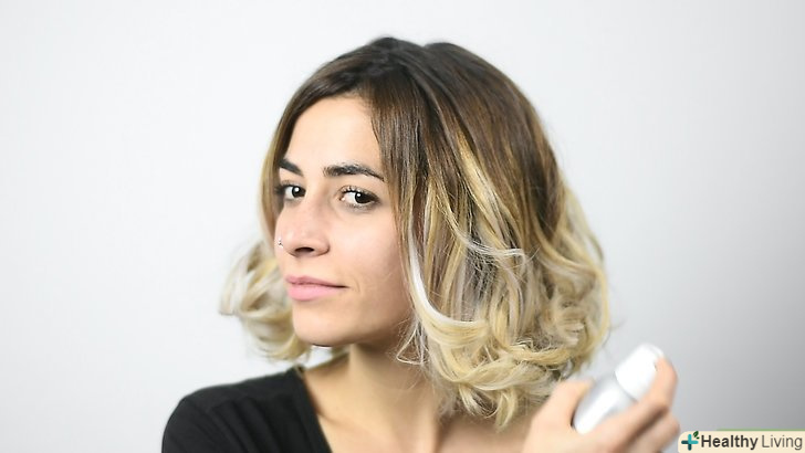Додатково зафіксуйте зачіску лаком для волосся. обробіть всю голову лаком для волосся для фіксації зачіски. Помірно користуйтеся лаком, щоб кучері не стали занадто жорсткими або хрусткими. [15]- Якщо ви хочете, щоб волосся придбали більш безладний і природний вигляд протягом дня, можна відмовитися від застосування лаку для волосся.