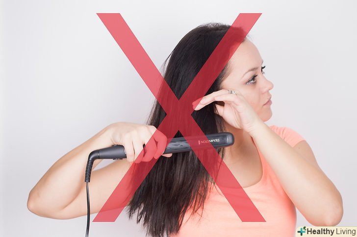 Намагайтеся не використовувати нагрівальні прилади. висока температура від приладів для укладання може привести до теплового ураження вашого волосся. Спробуйте укладати локони іншими способами, які не вимагають використання фена, прасування або плойки. Спробуйте укладати волосся, заплітаючи їх в коси і гульки, за допомогою чого ви дасте їм можливість відпочити від впливу високих температур. [22]- Спробуйте зменшити температуру нагрівального приладу, якщо вам все ж необхідно використовувати його для укладання волосся. Деякі прилади можуть нагріватися до 230°С, що досить багато, враховуючи той факт, що температура кипіння води всього лише 100°С. [23]