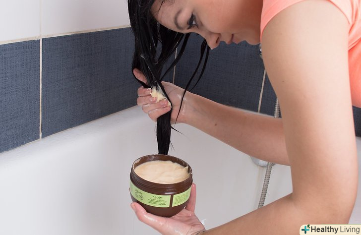 Використовуйте посилений кондиціонер для волосся. застосовуючи його кілька разів на місяць, Ви зможете додатково зволожити ваше волосся. Посилені кондиціонери містять такі інгредієнти, як натуральні масла, але також до їх складу входять деякі штучні компоненти, білки і полімери, які допомагають зволожувати ваше волосся. [8] Перед використанням шампуню нанесіть посилений кондиціонер на ваше волосся і за допомогою пальців рівномірно розподіліть по всій їх довжині, приділивши особливу увагу кінчиків. Залиште кондиціонер на волоссі на 15 хвилин, а потім змийте. [9]- Такі кондиціонери особливо добре працюють з тьмяним і пошкодженим волоссям, надаючи їм блиск.