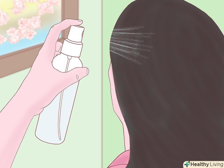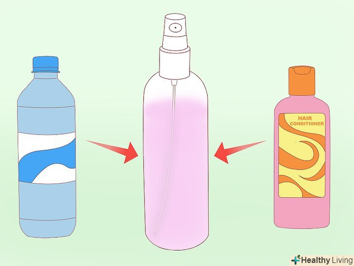 Приготуйте простий спрей, що полегшує розчісування волосся. для цього нам знадобиться вода і кондиціонер для волосся. Заповніть пульверизатор на 2/3 водою. Обсяг, що залишився заповніть своїм улюбленим кондиціонером для волосся. Закрийте пульверизатор і гарненько струсіть. Нанесіть суміш на волосся, щоб їх легше було розчісувати. Цей спрей можна наносити як на мокрі, так і на сухе волосся. [18]