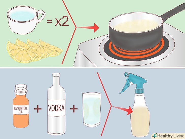 Приготуйте освітлюючий лак для волосся з лимона і ефірного масла. розріжте лимон на часточки і прокип'ятіть його в 475 мл води. Коли половина води випарується, вилийте її в пульверизатор і дайте охолонути. В окремій мисці змішайте 6-8 крапель ефірного масла з 30-45 мл горілки, після чого вилийте цю суміш в пульверизатор. Закрийте пульверизатор і гарненько його струсіть, щоб розмішати компоненти. [17]- Якщо у вас темне волосся, візьміть замість лимона апельсин. Лимони можуть занадто сильно освітлити темне волосся.