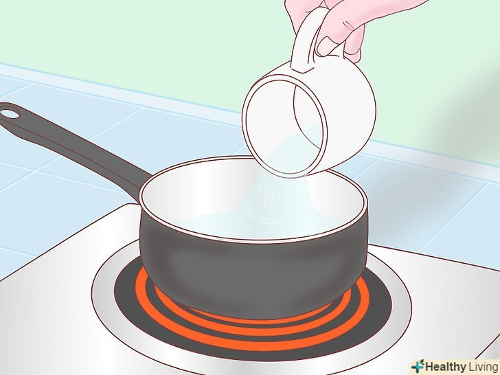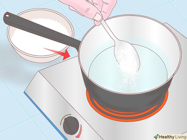 Налийте в каструлю 240 мл води і доведіть її до кипіння. по можливості намагайтеся використовувати фільтровану або дистильовану воду. У звичайній воді з-під крана міститься занадто багато хімічних речовин і мінералів, які з часом можуть зібратися на волоссі. У гарячій воді сіль розчиняється швидше.