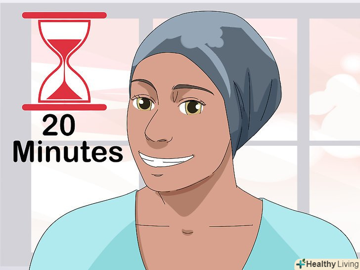 Дайте кондиціонеру висохнути. просушіть волосся феном протягом 20 хвилин, щоб вони краще ввібрали масло. Зачекайте ще 10 хвилин, поки коси висохнуть. Щоб масло вбралося ще краще, не знімайте шапочку з волосся ще годину після використання фена. [15]- Не нагрівайте волосся довше 30 хвилин, так як після цього вони перестануть поглинати масло.