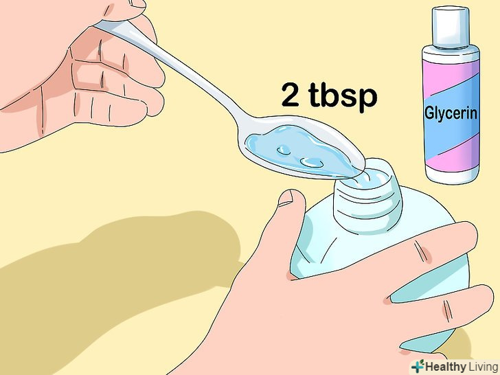 Додайте гліцерин. розкрутіть кришку розпилювача і додайте в розбавлений Кондиціонер 30 мл 100% чистого гліцерину. Закрутіть кришку назад і струсіть пляшечку, поки суміш не стане однорідною. [5]- Гліцерин не дасть волоссю закручуватися і збереже їх зволоженими.