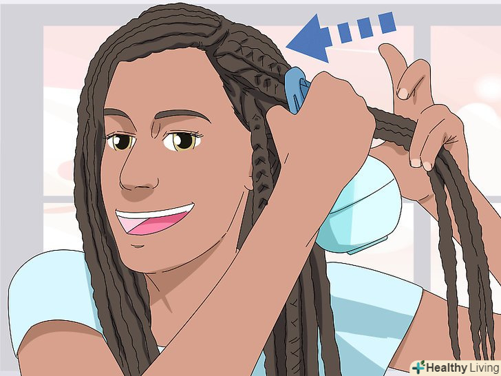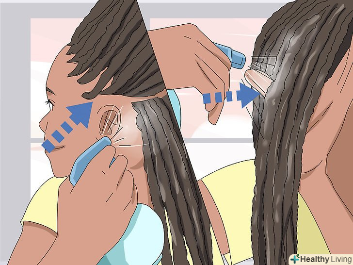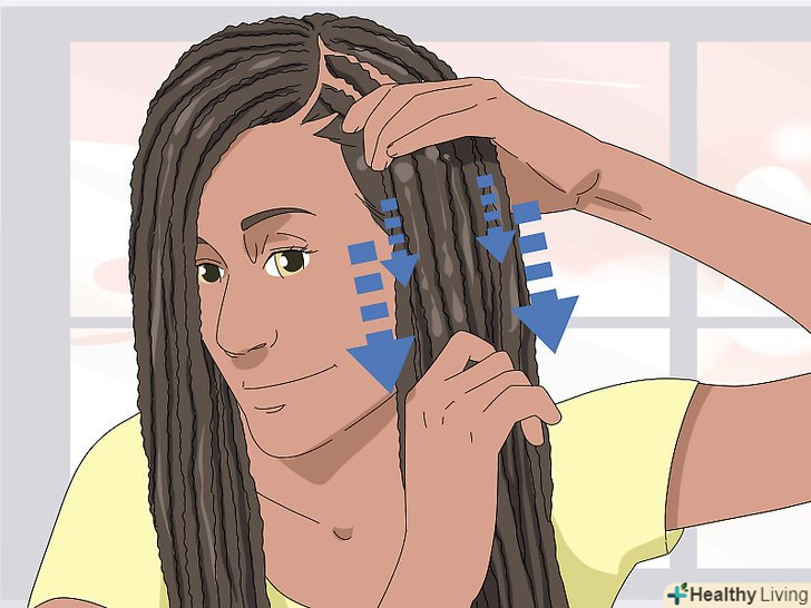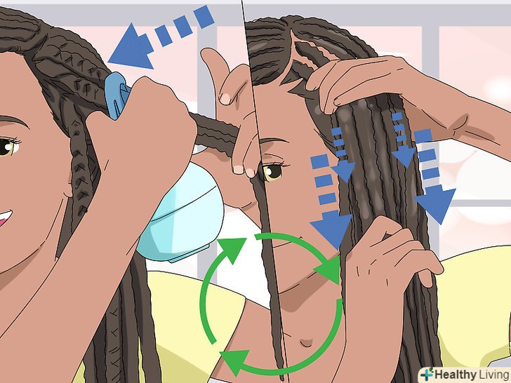 Зволожите інші косички. продовжуйте розпорошувати і втирати в пучки кіс зволожуючий засіб. Не забудьте зволожити важкодоступні коси на потилиці. [8]- Переконайтеся, що кінці косичок досить зволожені, так як вони висихають швидше за все. Зволоження кінців дозволить кіскам протриматися довше.