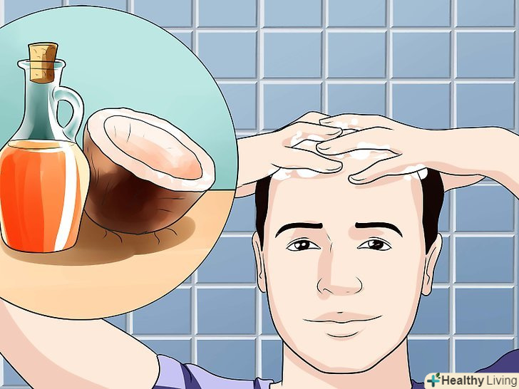 Спробуйте масажувати шкіру голови. Масаж посилить приплив крові до волосяних фолікулів, що сприятиме здоров'ю шкіри голови і зміцнить коріння. Однак ефективність цього методу не була доведено науково, тому невідомо, чи служить масаж засобом профілактики або лікування облисіння.- Використовуйте кокосове або мигдальне масло. Підійдуть і інші масла: оливкова, касторове, масло амли (індійського агрусу). За бажанням можна добавтиь кілька крапель розмаринового масла.