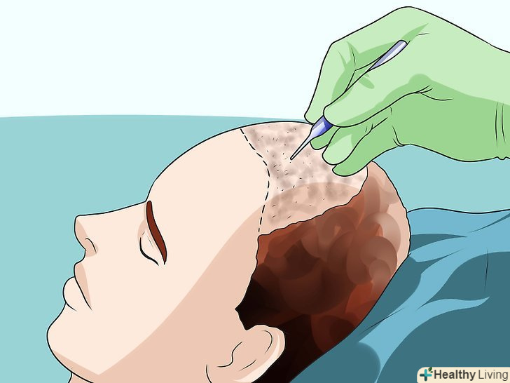 Пересадіть волосся. при пересадці волосся крихітні ділянки пересідають зі здорової ділянки голови на лисіючий. Зазвичай це робиться за кілька разів. Процедура недешева, зате ефект зберігається назавжди. [12]- Перед початком процедури вам зроблять місцеву анестезію, щоб шкіра голови втратила чутливість.
