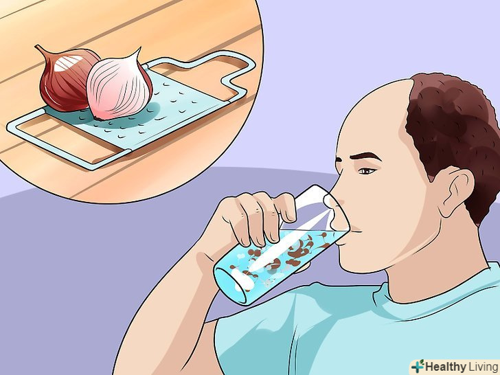 Спробуйте нанести сік цибулі. хоча ефективність цього методу не була до кінця підтверджена дослідженнями, цибульний сік може стимулювати ріст волосся у людей з облисінням за чоловічим типом. У дослідженні, в якому брали участь 23 людини, після нанесення соку цибулі на голову двічі на день протягом шести тижнів поліпшення спостерігалися у 20 осіб. [29]- Хоча в дослідженні брали участь пацієнти з кругової алопецією, ви теж можете спробувати.