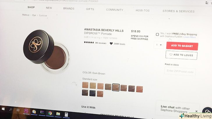 Виберіть бажаний відтінок. Якщо ви хочете отримати більш темні брови, то можна використовувати засоби для макіяжу очей: пудру, гель, помаду або олівці для брів. Засоби для макіяжу очей випускають в різних відтінках, тому важливо вибрати колір, який найкраще підходить до волосся.- Якщо у вас руде волосся, то для брів виберіть схожий колір, але трохи більш блідий, якщо у вас шкіра з рожевим подтоном.