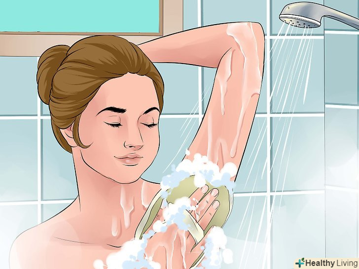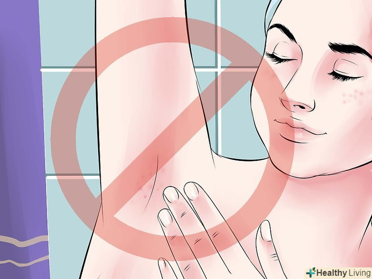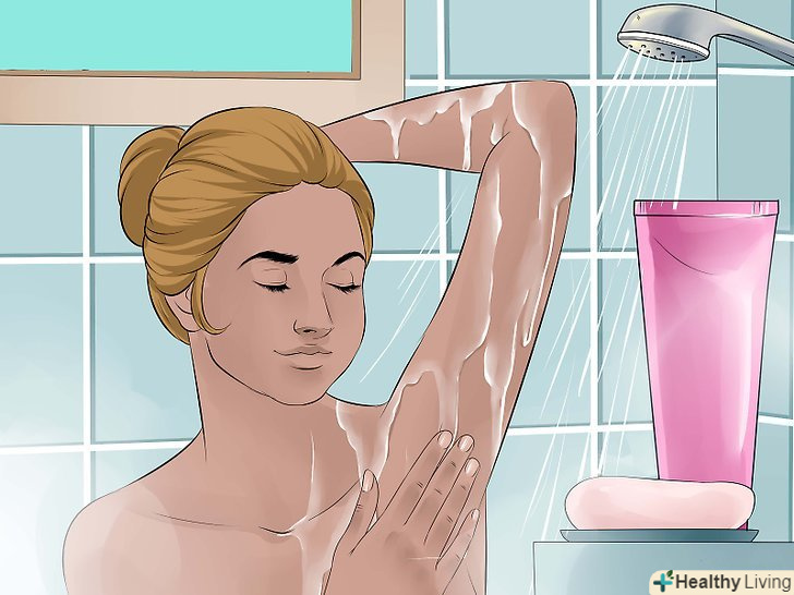 Регулярно відлущуйте шкіру. тріть пахви отшелушивающей мочалкою або рукавицею, змоченими водою і отшелушивающим милом. Таким чином ви видалите з шкіри бруд і жир і уникнете зростання волосся. [8]- Частота, з якою слід проводити відлущування, цілком залежить від типу шкіри. Більшість людей може робити це 2-3 рази на тиждень, навіть з чутливою шкірою пахв, однак якщо ви помітите негативну реакцію (почервоніння, підвищену чутливість шкіри тощо), слід відлущувати шкіру не так часто.