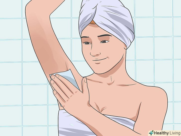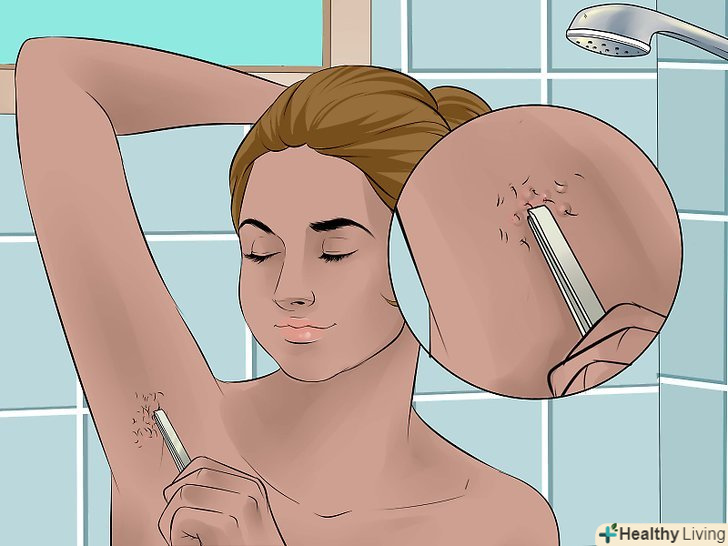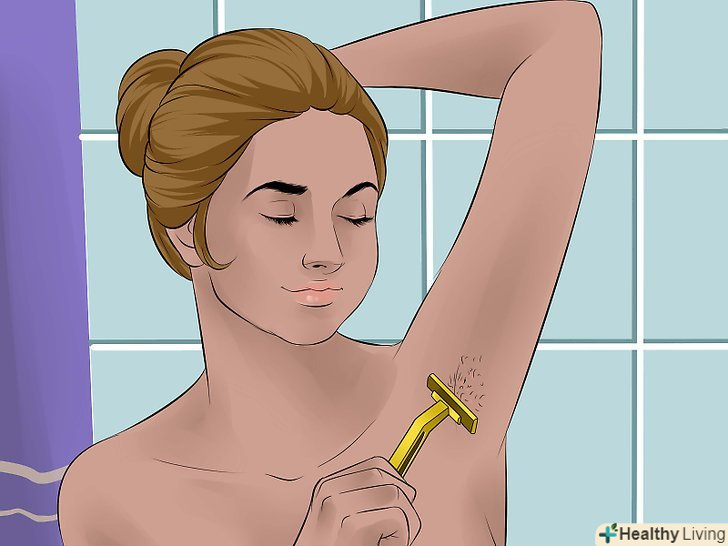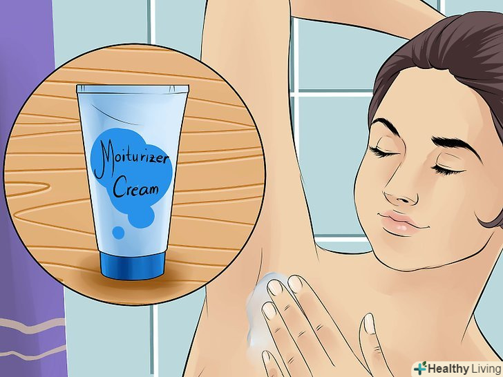 Часто зволожуйте пахви. регулярно використовуйте зволожуючий засіб, щоб пом'якшити шкіру під пахвами і полегшити їх гоління. [10]- Заведіть звичку наносити зволожуючий засіб кожен раз після прийому душу.