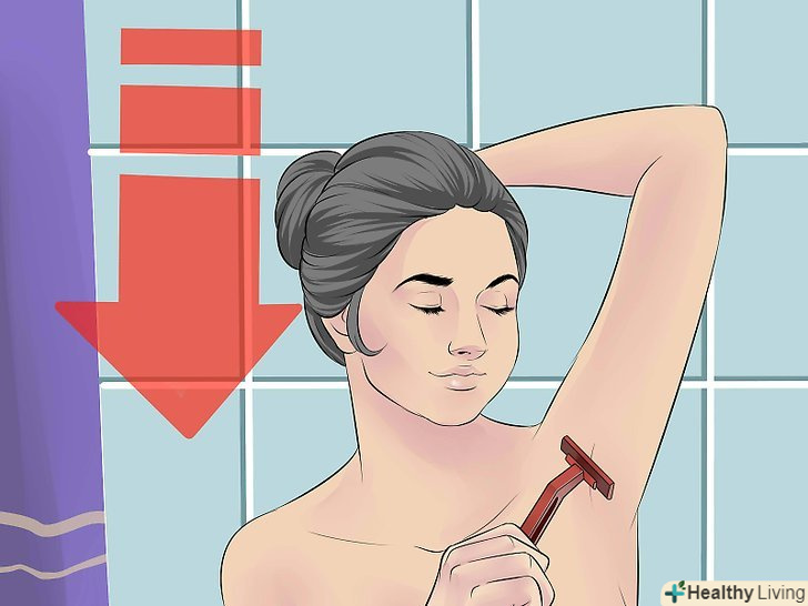 Голіться вздовж напрямку росту волосся. хоча багато хто воліє водити бритвою проти напрямку росту волосся, так як це дозволяє якомога глаже виголити шкіру, краще голити волосся в напрямку їх зростання не надто близько до шкіри, щоб вони не врізалися в неї.- Це може бути непросто, оскільки волосся в області пахв ростуть в різних напрямках. Проте постарайтеся голити волосся в напрямку їх зростання.
