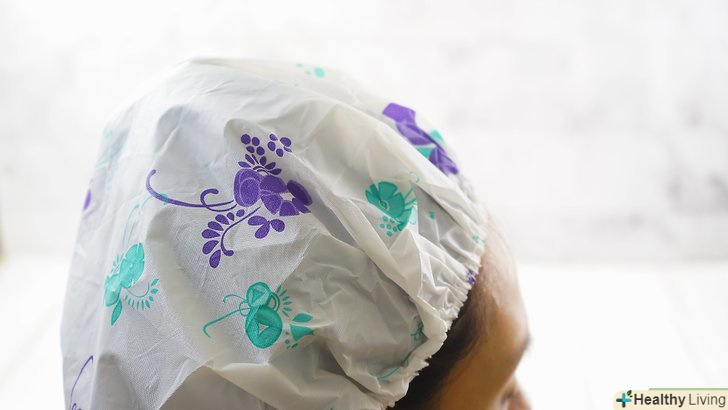 - Нанесіть маску на волосся, накрийте шапочкою для душу і кілька хвилин нагрівайте феном. Так ви зробите маску ще більш ефективною. [24]