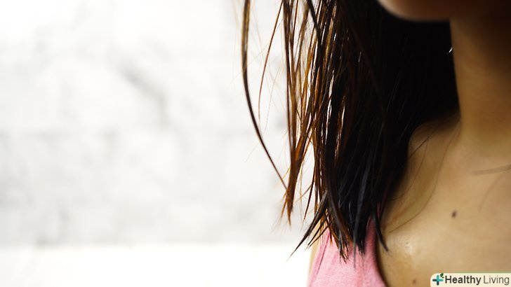 Почніть з чистої шкіри голови. ця маска дуже поживна, тому потрібно починати з чистої шкіри голови. Вимийте волосся шампунем для глибокого очищення і обов'язково промасажуйте їм шкіру голови. Змийте шампунь і відіжміть з волосся зайву воду. Залиште волосся вологим. [19]