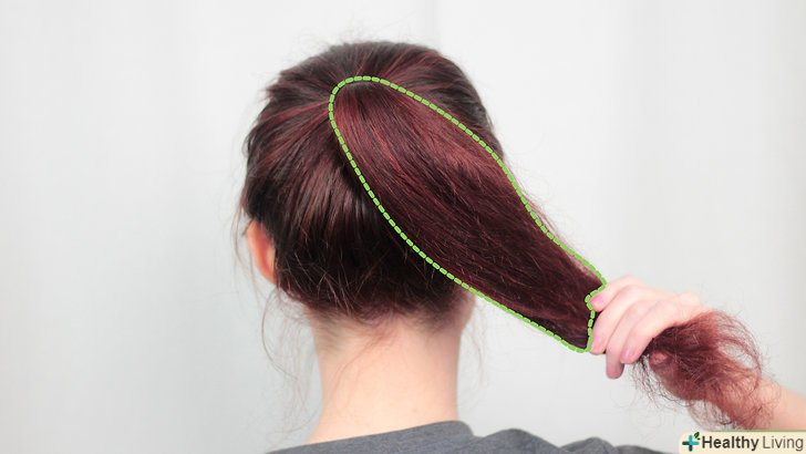 - Зберіть волосся в хвіст. візьміть верхню частину волосся і зберіть їх у високий хвіст на маківці. Рукою притримуйте вийшов хвостик. [18]