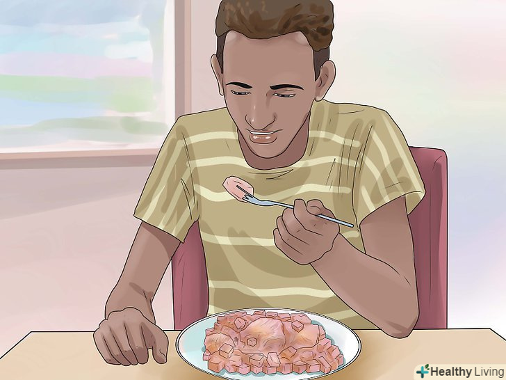 Їжте багато білка. М'ясо і бобові є одними з головних джерел білка. Включіть в свій раціон більше курки, індички, яєць, арахісу, бобів, гороху і сочевиці. Велика кількість білка міститься в грецькому йогурті.- Волосся майже повністю складається з білка, тому, якщо ви не споживаєте достатню кількість білка, то ніколи не зможете відновити втрачені волосся. Дефіцит білка також може привести до того, що залишилися волосся почнуть рідшати і сіріти.