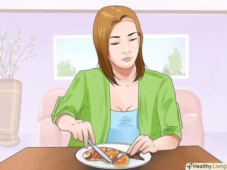 Споживайте більше омега-3 жирних кислот. Хорошими джерелами омега-3 є жирні сорти риби, наприклад, лосось і тунець, лляне насіння, волоські горіхи, кормова і брюссельська капуста.- Омега-3 утримуються всередині волосся і в клітинних мембранах шкіри голови, де вони зміцнюють волосяні фолікули і стимулюють їх зростання. Крім того, волосся стане набагато міцніше, тому відростають пасма не будуть так сильно ламатися.