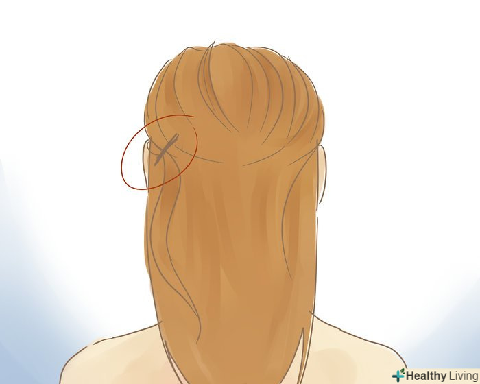 Візьміть невеликий локон волосся трохи вище правого вуха, і закладіть назад. закріпіть.