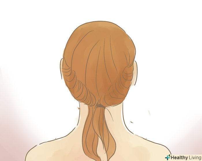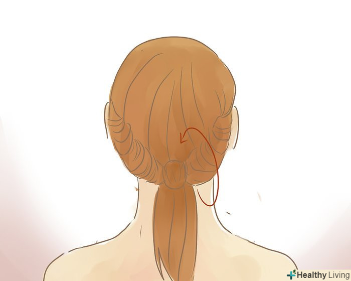 Кожен хвостик оберніть навколо підстави так, щоб вийшло два пучка. кінчики волосся закріпіть за допомогою шпильок.