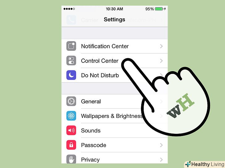 Проведіть вгору по екрану мобільного пристрою.відкриється Пункт управління.