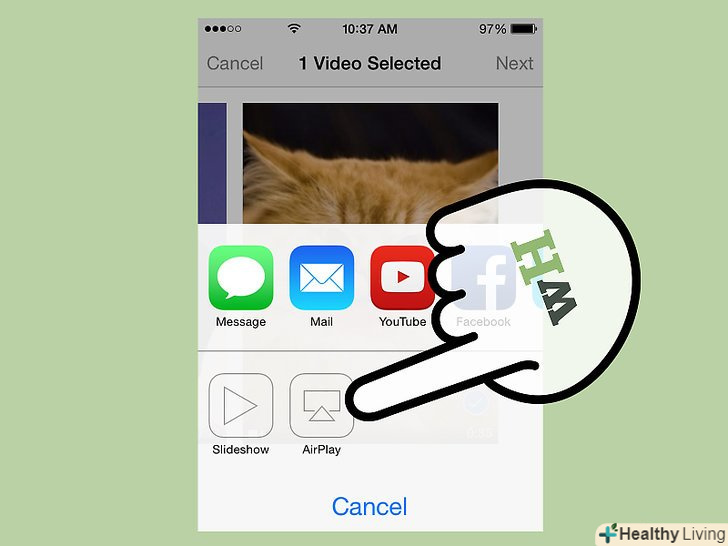Перейдіть до медіафайлів, які будуть транслюватися через AirPlay.тепер натисніть "Відтворити". Запуститься відтворення мультимедійного контенту на пристрої з функцією AirPlay.[2]