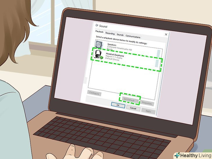 Виберіть гарнітуру як аудіопристрій за замовчуванням. ось як це зробити:[2]- Натисніть⊞ Win+S, щоб відобразити пошуковий рядок;