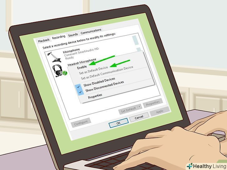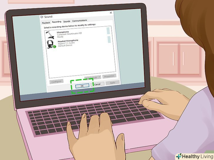 Виберіть мікрофон гарнітури як мікрофон за замовчуванням. Ось як це зробити:- Натисніть на вкладкуЗапис вгорі вікна»Звук";